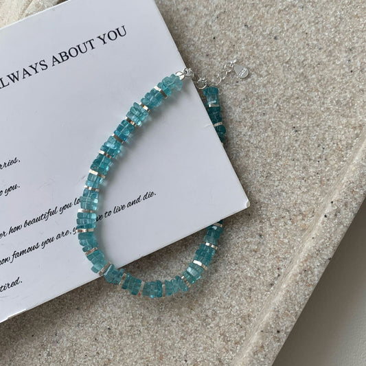 S 925純銀氷透青リン灰水晶手串女韓国シンプルなニッチデザイン小紅書ins風ブレスレット