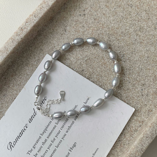 S 925純銀天然淡水灰真珠ブレスレット女性フレンチレトロ軽贅沢ニッチデザインins爆金ブレスレット