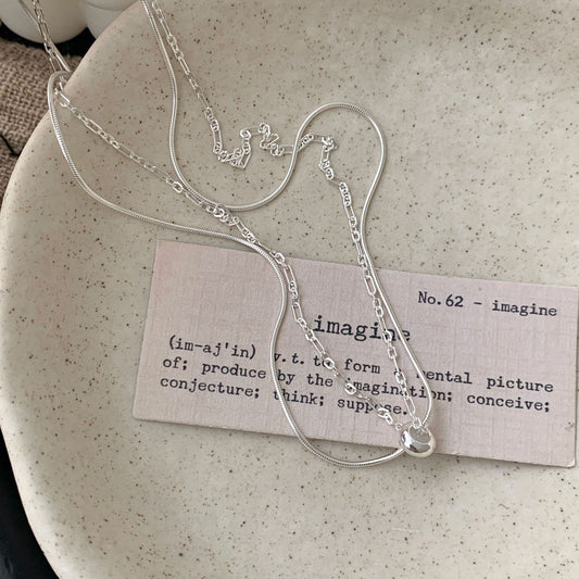 S 925純銀二重リングプル蛇骨ネックレス女性韓国ins風ニッチデザイン小紅書鎖骨チェーン