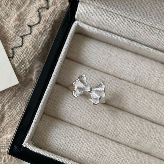 S 925スターリングシルバーリボンリング女性韓国のニッチデザイン高級感レトロなinsシンプルな小紅書リング
