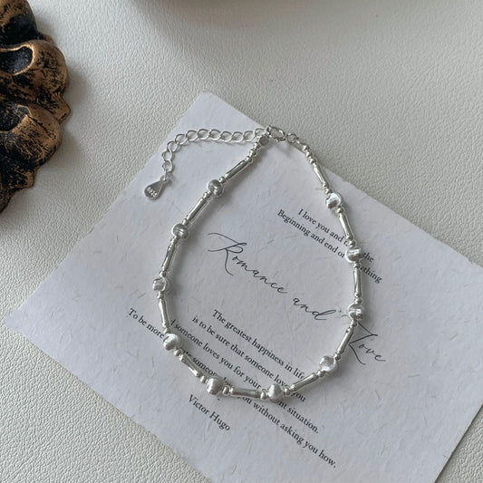 S 925純銀ダブルリングブレスレット女性韓国シンプルins風レトロ高級感ニッチデザイン小紅書ブレスレット