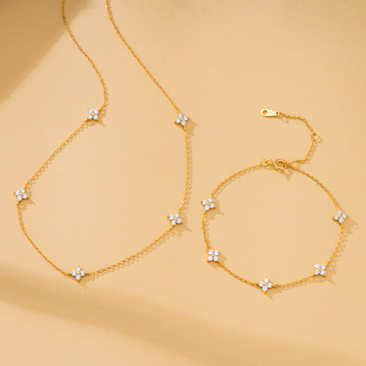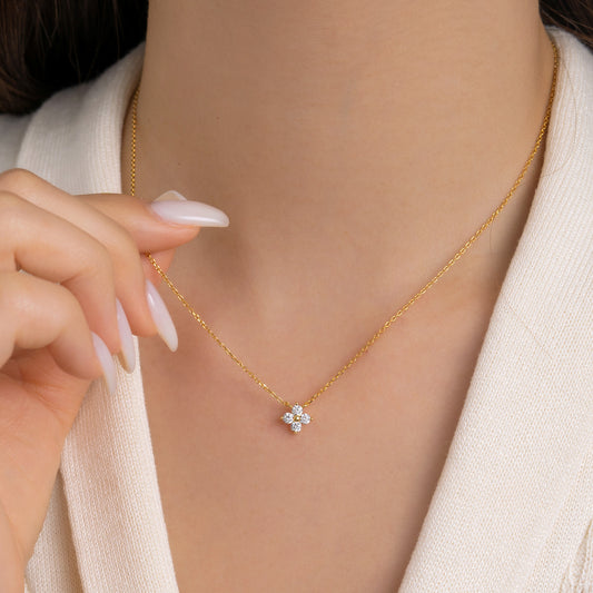 s 925純銀の新しいダイヤモンド四葉草満天星ネックレス女性の百合四弁小花ジルコン鎖骨チェーンプレゼント