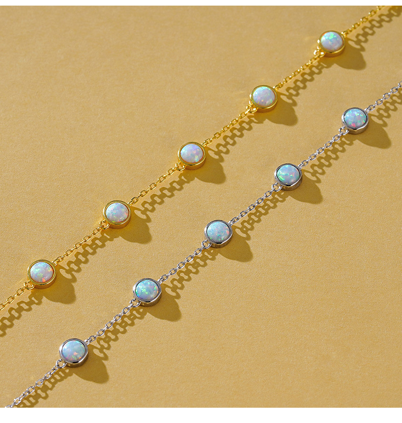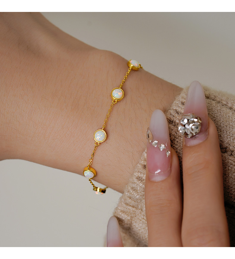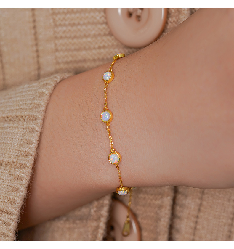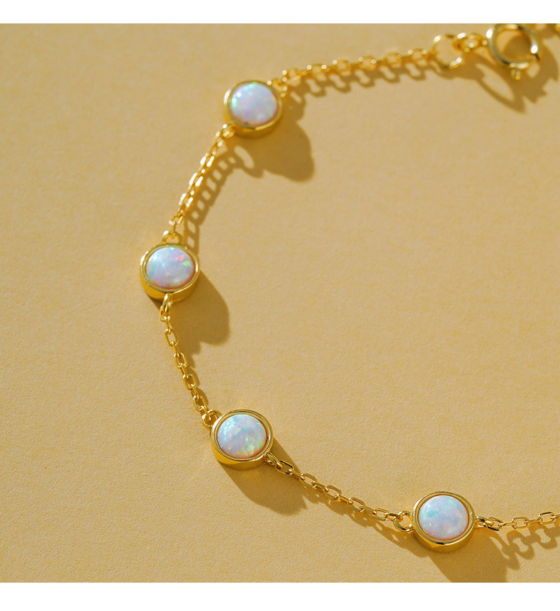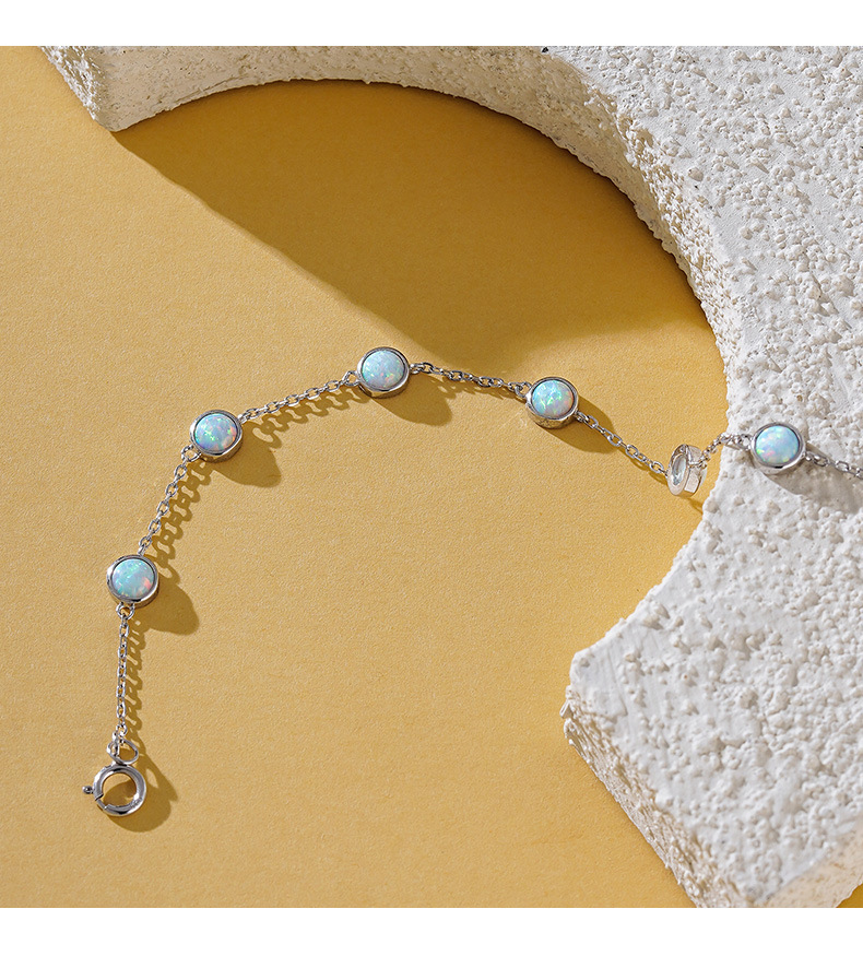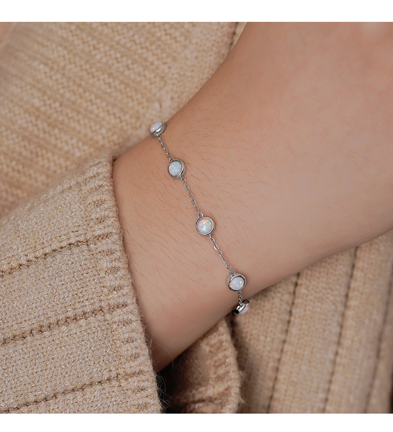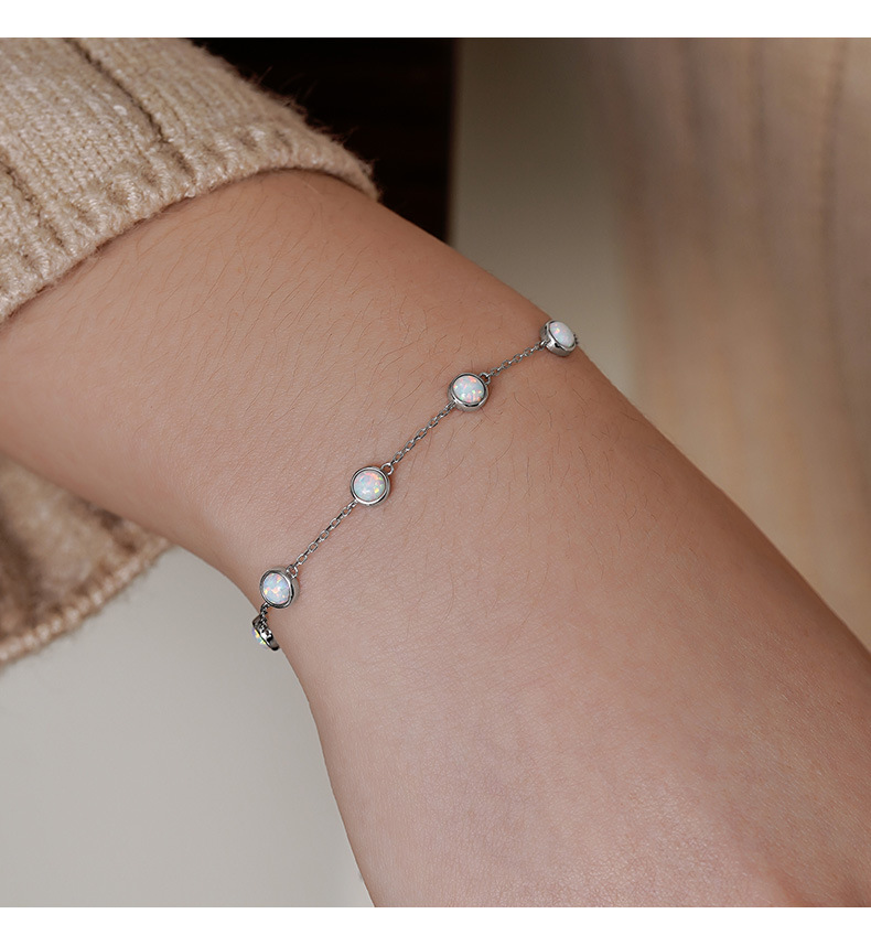 S 925全体純銀7個オパール細ブレスレット軽奢高級感百合手アクセサリーinsギフトインターネットでの有名人ジュエリー