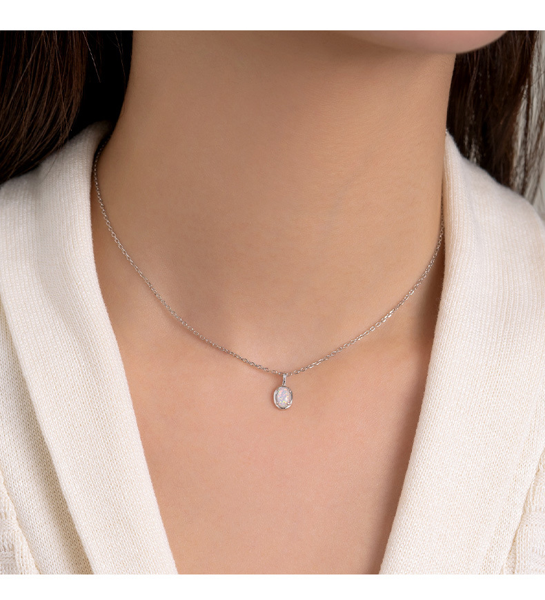 s 925純銀シンプルな百合幾何学楕円ゼリー欧泊ペンダント小衆軽奢高級円形鎖骨チェーン女